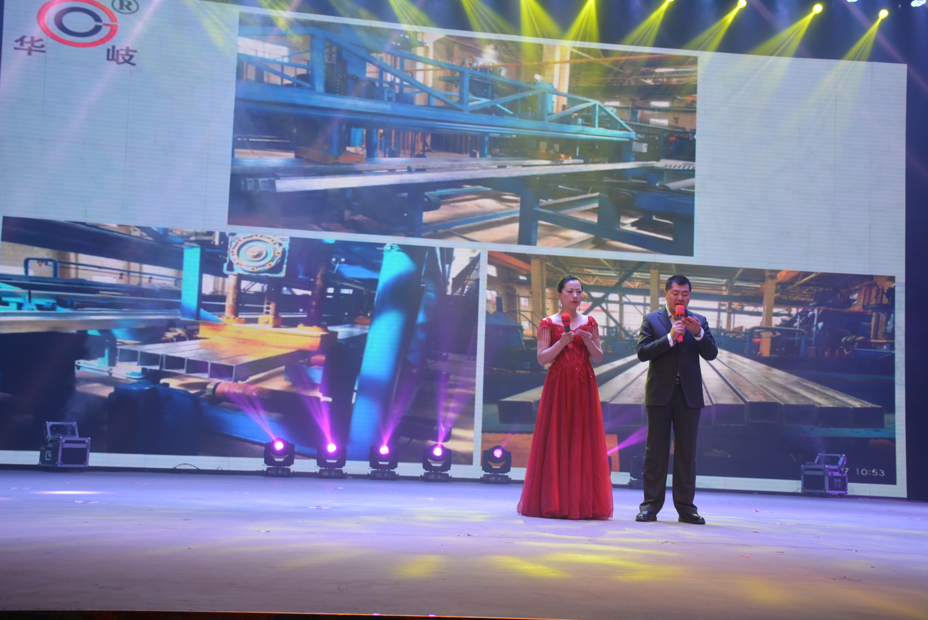此次联欢会分为三个篇章。第一篇章“春天故事”在主持人的引领下,共同回顾了建厂时的艰辛与京华人的奋斗精神,创造了90天建厂投产的“京华速度”,一个焊管业界的娇子乘风破浪,开启了崭新的征程,公司成立17年来的发展历程让在场的员工历历在目。