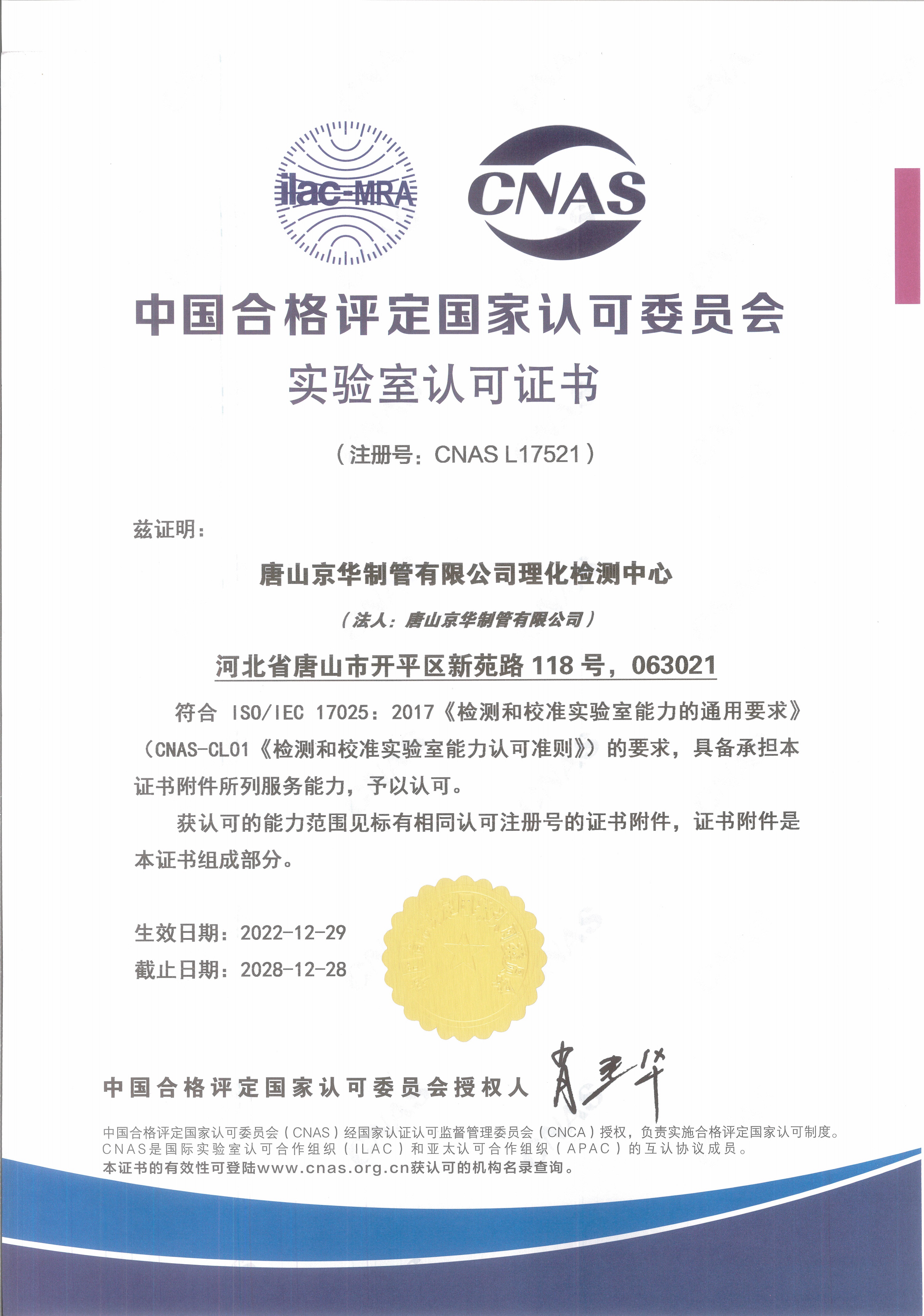 唐山京华理化检测中心通过CNAS国家认可实验室认证