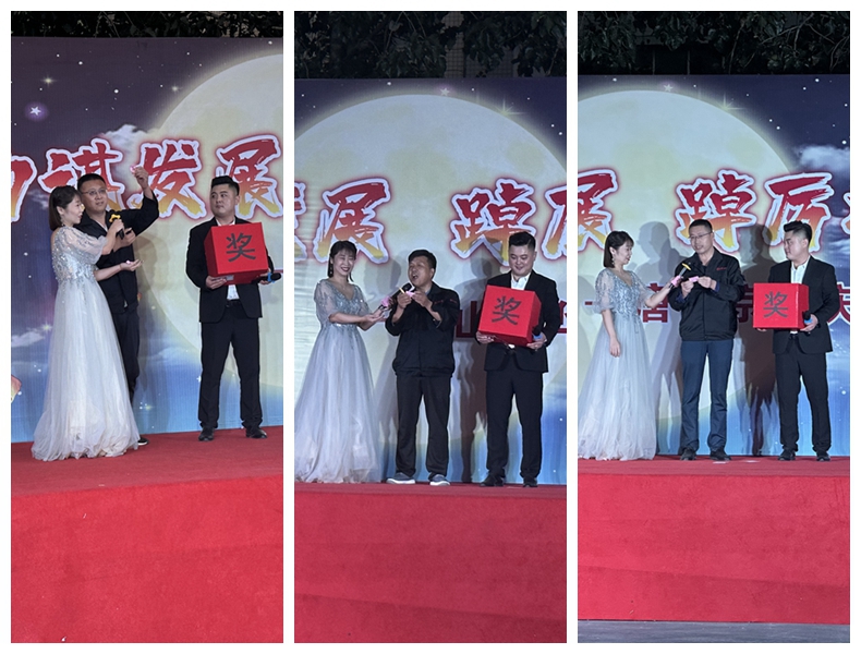 台上歌声激荡,台下掌声如雷,晚会中的抽奖活动再一次将气氛推向高潮,中奖的员工脸上露出了开心的笑容。